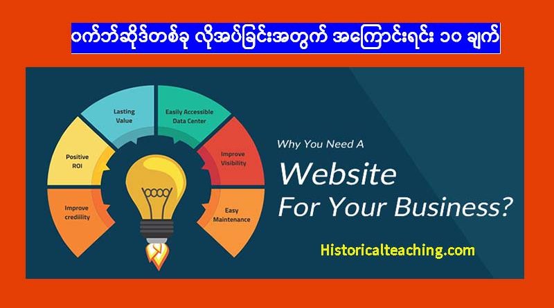 Read More၀က်ဘ်ဆိုဒ်တစ်ခု လိုအပ်ခြင်းအတွက် အကြောင်းရင်း ၁၀ ချက် 1. Websites Never Sleep. လူတွေအိပ်ပျော်နေချိ်န်မှာWebsite က အိပ်မပျော်ပါဘူး။ ညနေအလုပ်အားလုံးရပ်နားချိန်၊ ရုံးဆင်း၊ ရုံးပိတ် ချိန်တွေမှာလဲ ၀က်ဘ်ဆိုဒ်က မရပ်မနားဘဲ အချိန်ပြည့်ရှိနေပါတယ်။ ၀က်ဘ်ဆိုဒ်က
